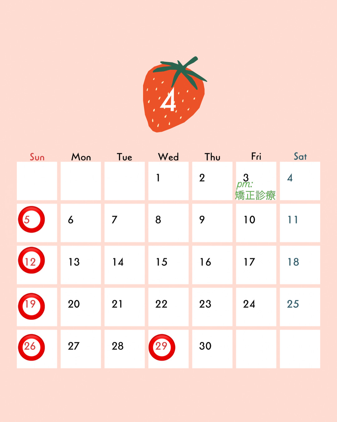 🍓4月の診療日のお知らせ🍓